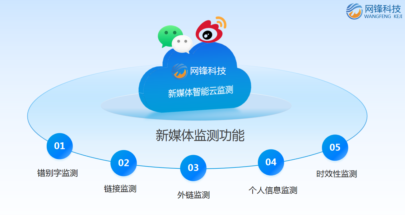 以根据《政府网站发展指引I》《政府网站与政务新媒体检查指标》等相关政策文件要求引入大数据分析、自然语言处理及AI诊断分析等技术构建覆盖辖区内网站群监测平台。该平台为各单位提供问题自查自纠的工具,同时也为辖区内网站监管工作提供有力的技术支撑。以国办最新政务新媒体相关政策文件为依据,采用“内容统一监控、问题统一督办”的集约化监管方式,对政务新媒体整体运营情况、发布时效性情况、内容健康性情况等进行全方位动态监控。