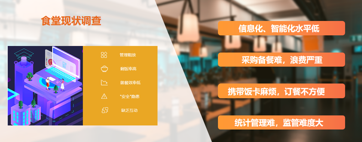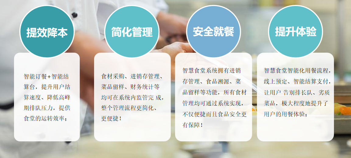 “智慧食堂订餐管理系统 ”是一款全面、先进的食堂管理软件,能够为政府、医院、学校、企业单位提供全新的“移动互联”信息化解决方案,由内而外打造理念超前、技术先进的互联网食堂。